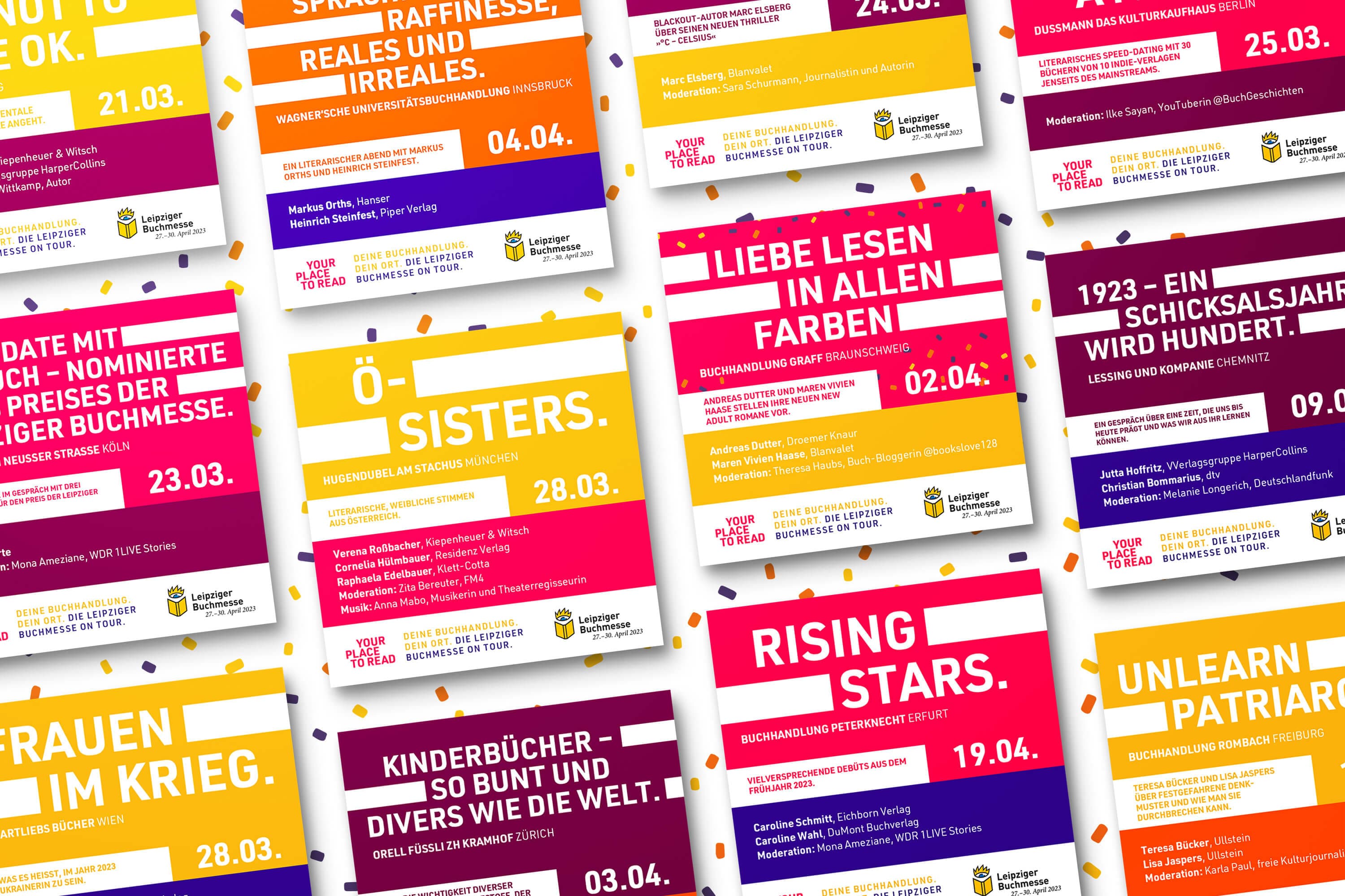 Die Leipziger Buchmesse feiert den stationären Buchhandel: offline bei einer facettenreichen Lese-Tour in zwölf Buchhandlungen, online mit einer bunten Aktion auf Instagram. Das Motto ist »YOUR PLACE TO READ — Zeig uns deine Lieblingsbuchhandlung!« und wir hatten das Privileg, für ehrlich & anders das Keyvisual und die Kampagne zu gestalten.